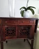 The table is fretwork carved on all base panels in the Chinese Chippendale manor.