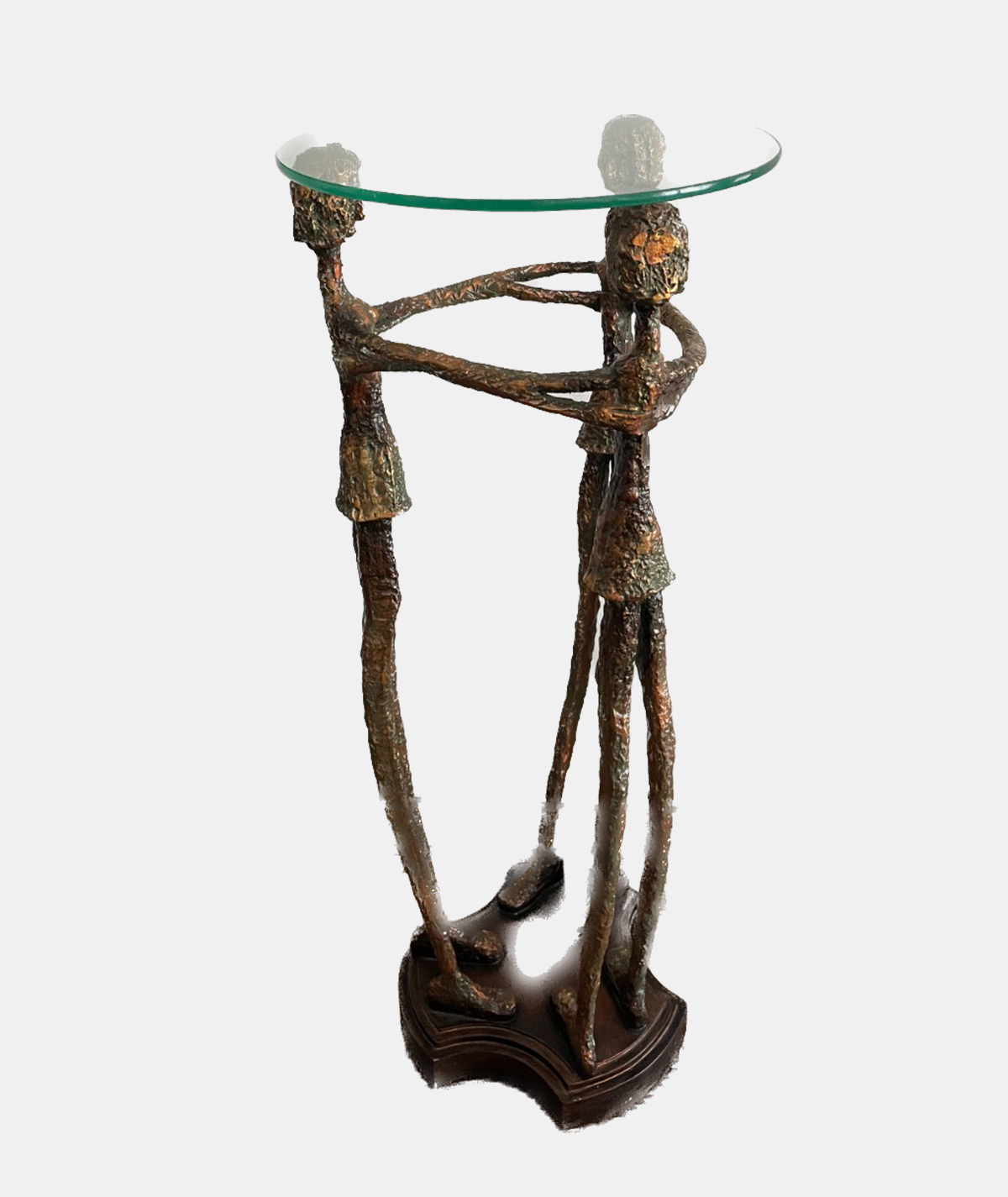 La Escultura/Mesa de estilo Giacometti es una pieza de arte funcional que fusiona la forma escultórica con la utilidad de una mesa. Inspirada en el estilo distintivo del famoso artista suizo Alberto Giacometti, esta pieza presenta líneas delgadas y elegantes que evocan la estética surrealista y moderna de sus obras. Con su diseño único y atemporal, esta escultura/mesa agrega un toque de sofisticación y vanguardia a cualquier espacio interior. Ya sea como una obra de arte independiente o como una mesa auxiliar que destaque en un ambiente contemporáneo, esta pieza impresionante seguramente capturará la atención y provocará conversaciones entre los admiradores del arte y el diseño.
