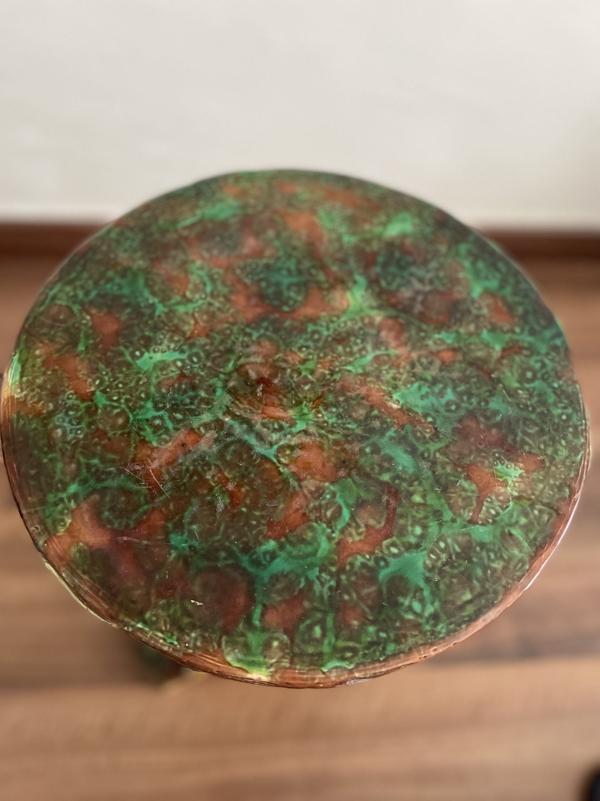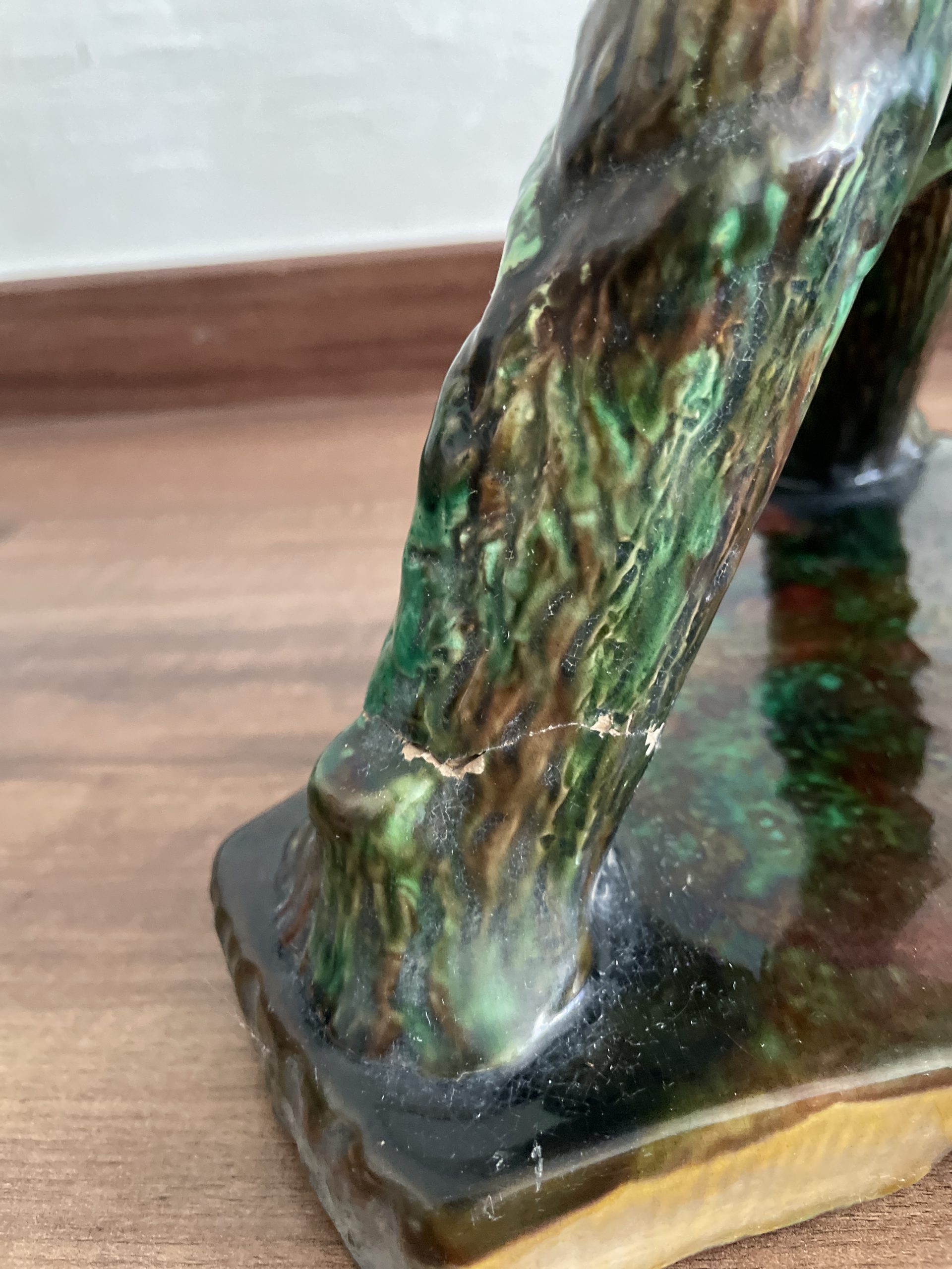 Tiene golpe pequeño en la parte de abajo, y una grieta. Pero no esta influendo a la estabilidad de etrutcura, la forma y la vista.