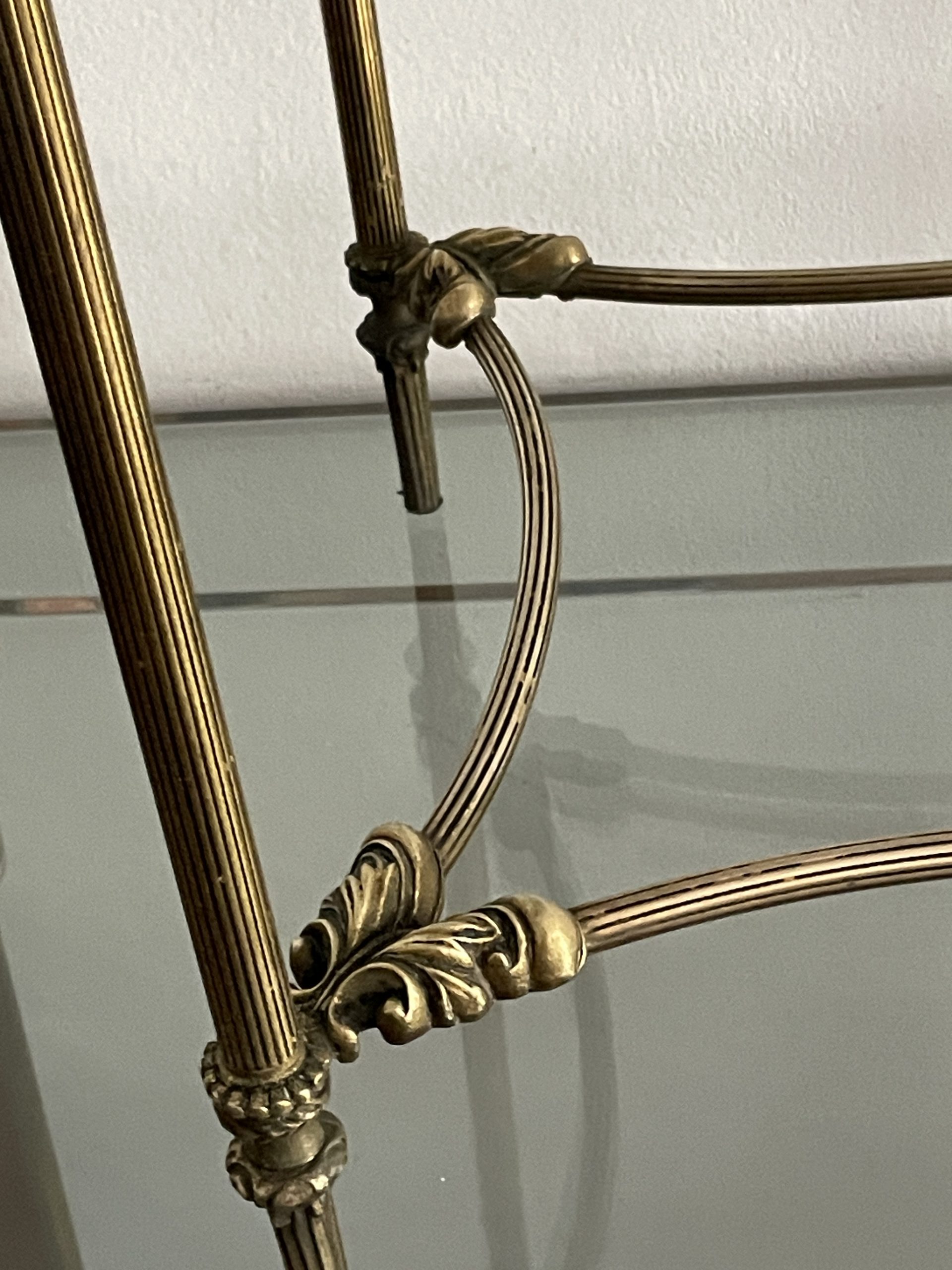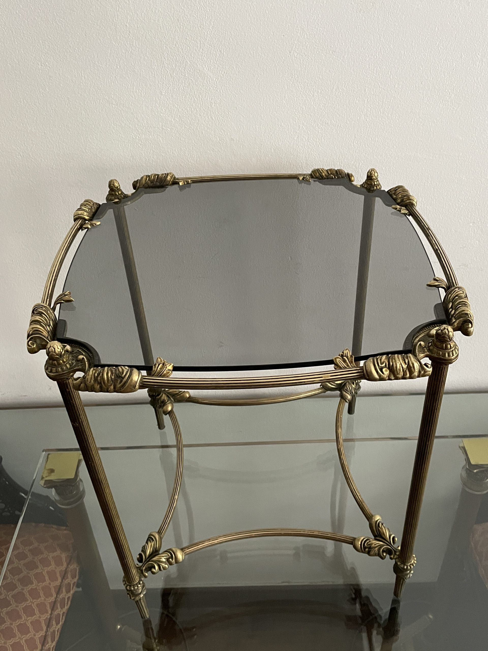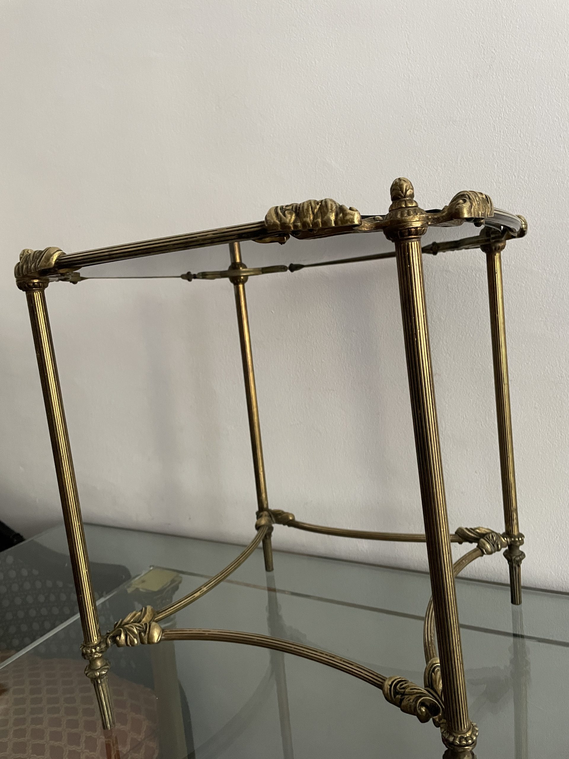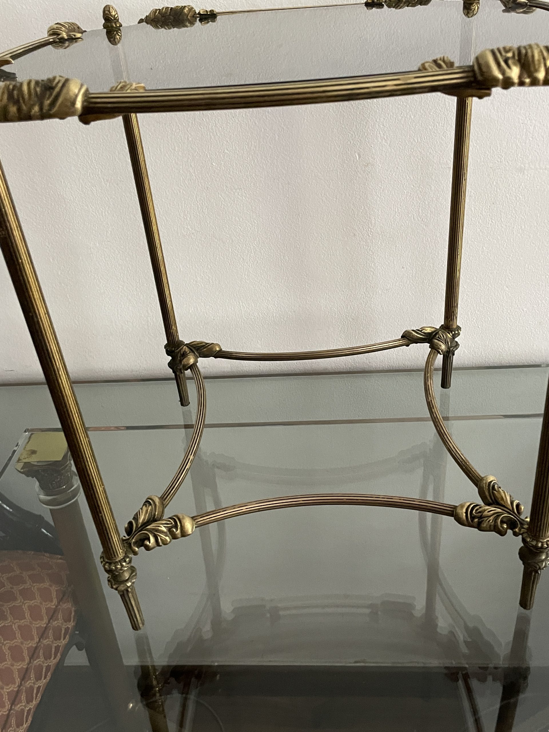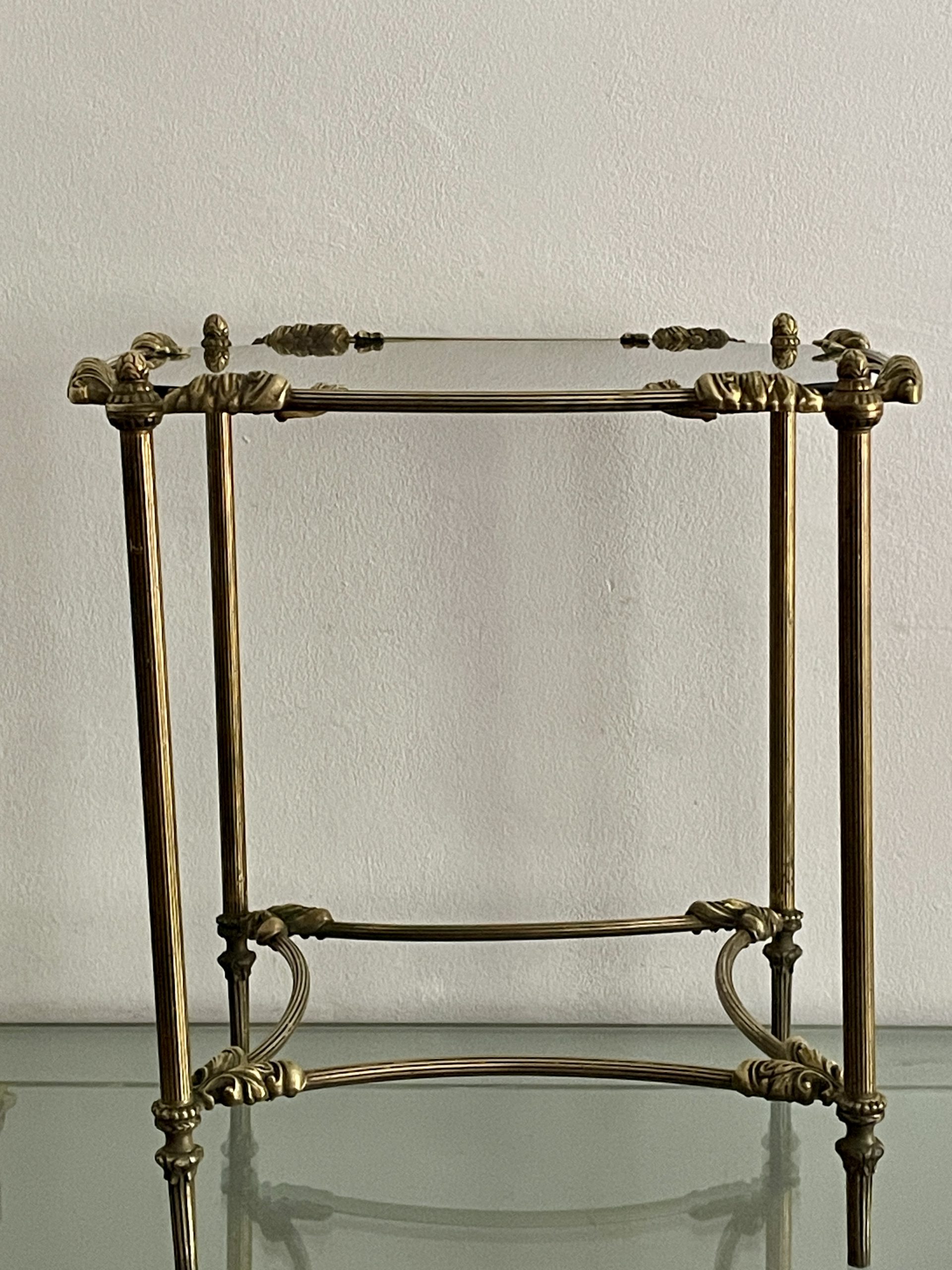 Mesita  auxiliar  de bronce / cristal  italiana,años  40s.