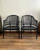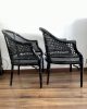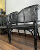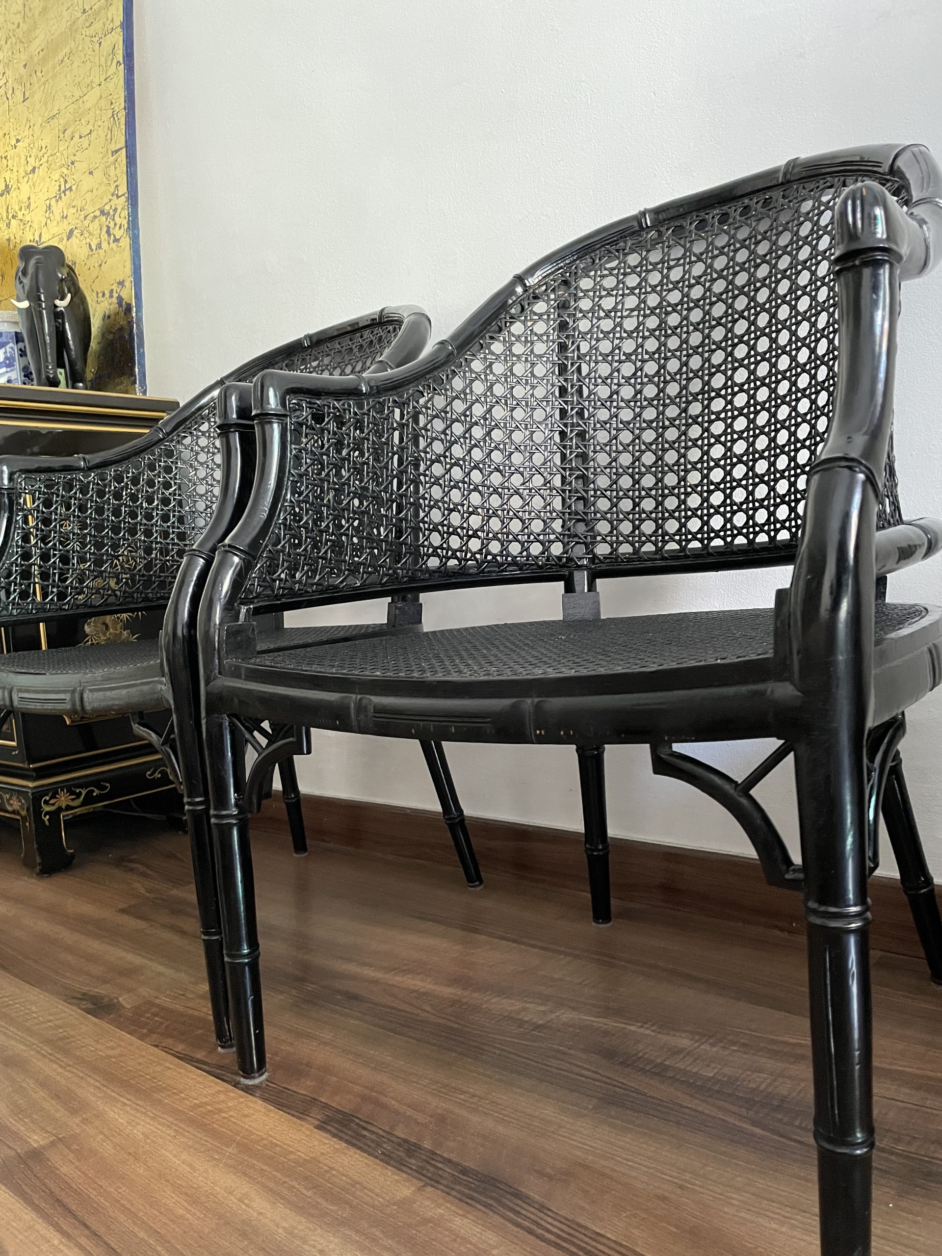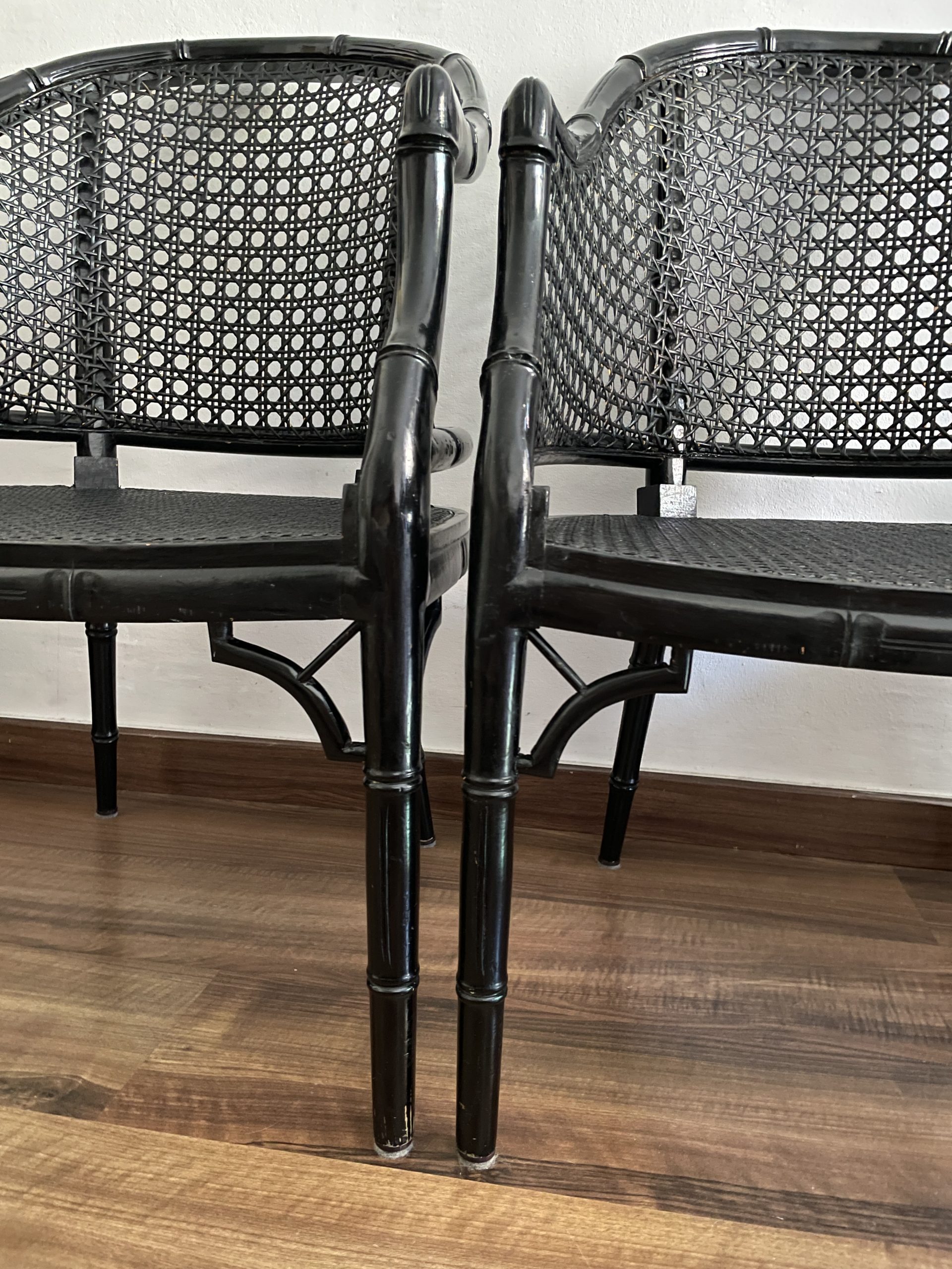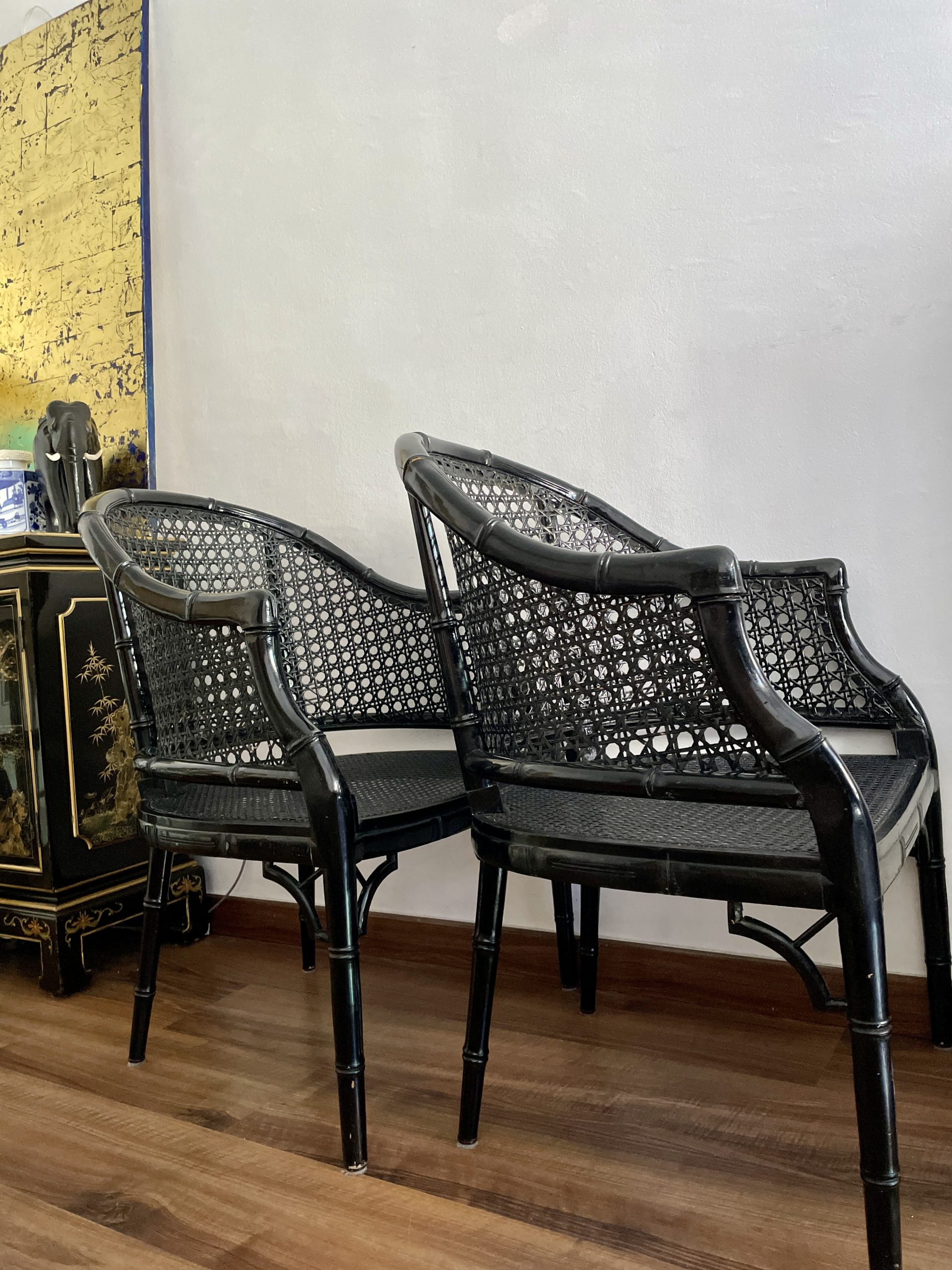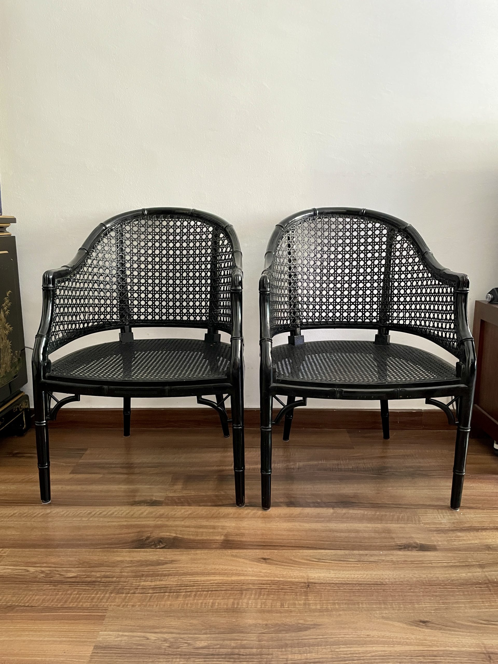 Sillas   vintage lacquered  en negro   de bambú falso  de estilo Hollywood Regency .